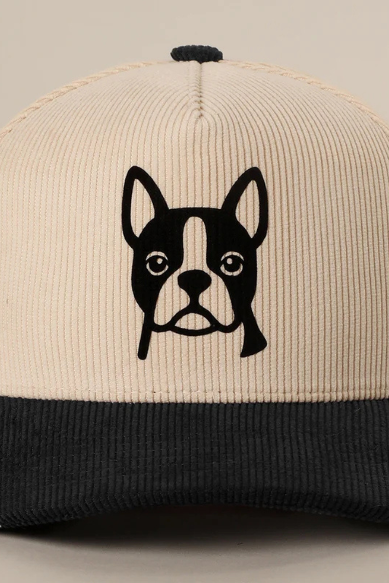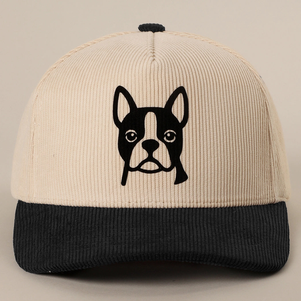 Show off your love for French Bulldogs with this playful corduroy cap featuring a heat-pressed bulldog graphic. Crafted from soft, textured corduroy fabric, this cap offers a cozy yet stylish vibe. The structured six-panel design and curved brim ensure a timeless fit, while the adjustable strap provides comfort for all-day wear. Available in charming two-tone color options, this cap makes a perfect gift for dog lovers or a fun addition to your own casual wardrobe. Whether you’re out for a walk or just running errands, this bulldog cap adds character and cuteness to any look.