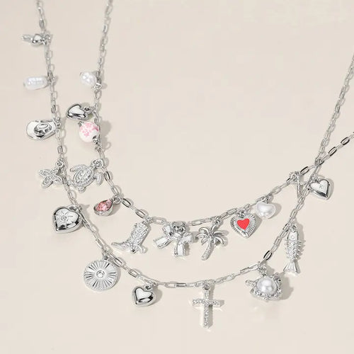 Fish Turtle Heart Cross Bow Pearl Charm Necklace
