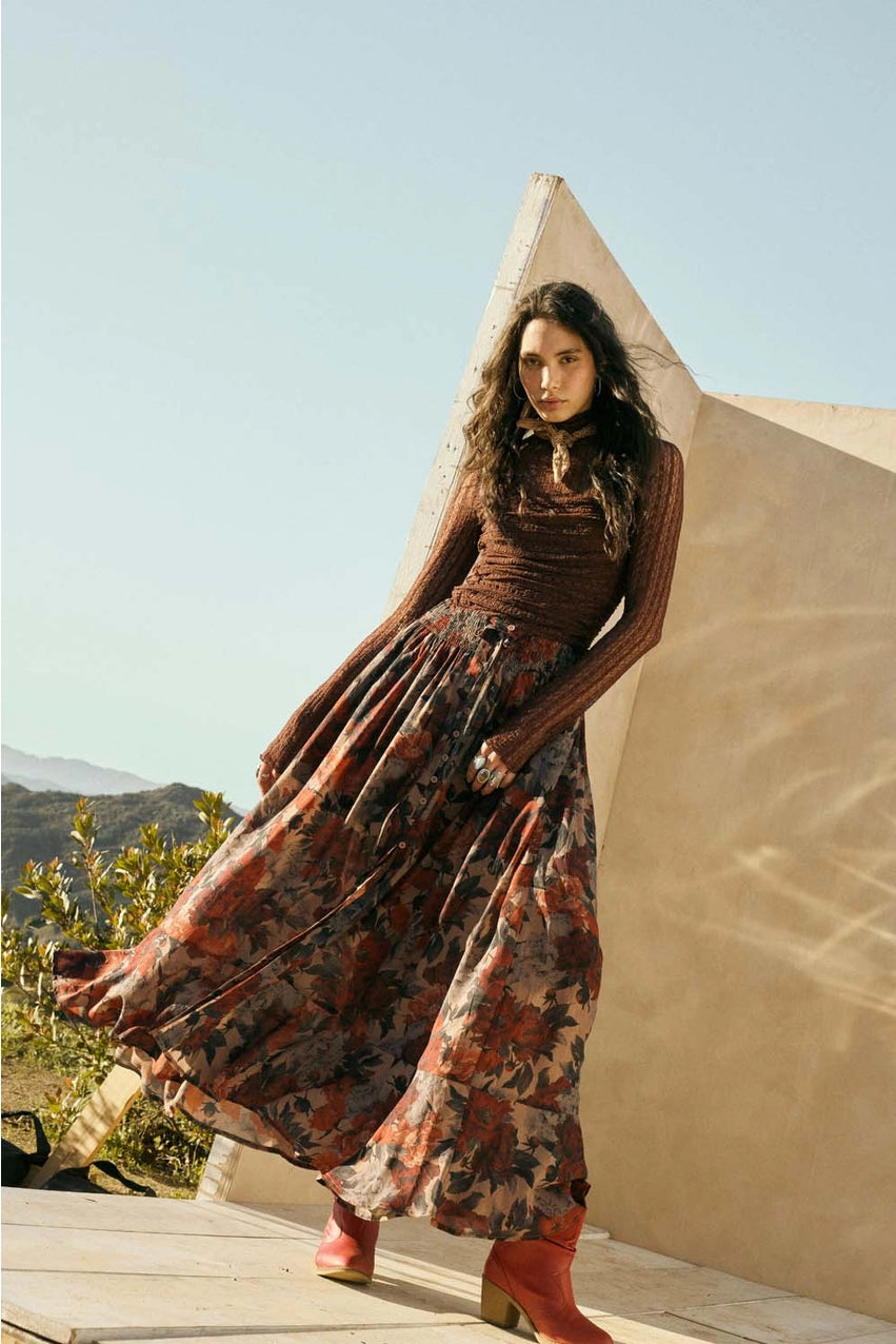 A breezy essential for every season, this maxi skirt combines effortless style with everyday comfort. Featuring a charming floral print and a button-front design, it’s finished with an adjustable drawstring waist for the perfect fit. The flowy silhouette gives it movement and elegance, making it easy to dress up with a blouse or keep casual with a tee and sandals.