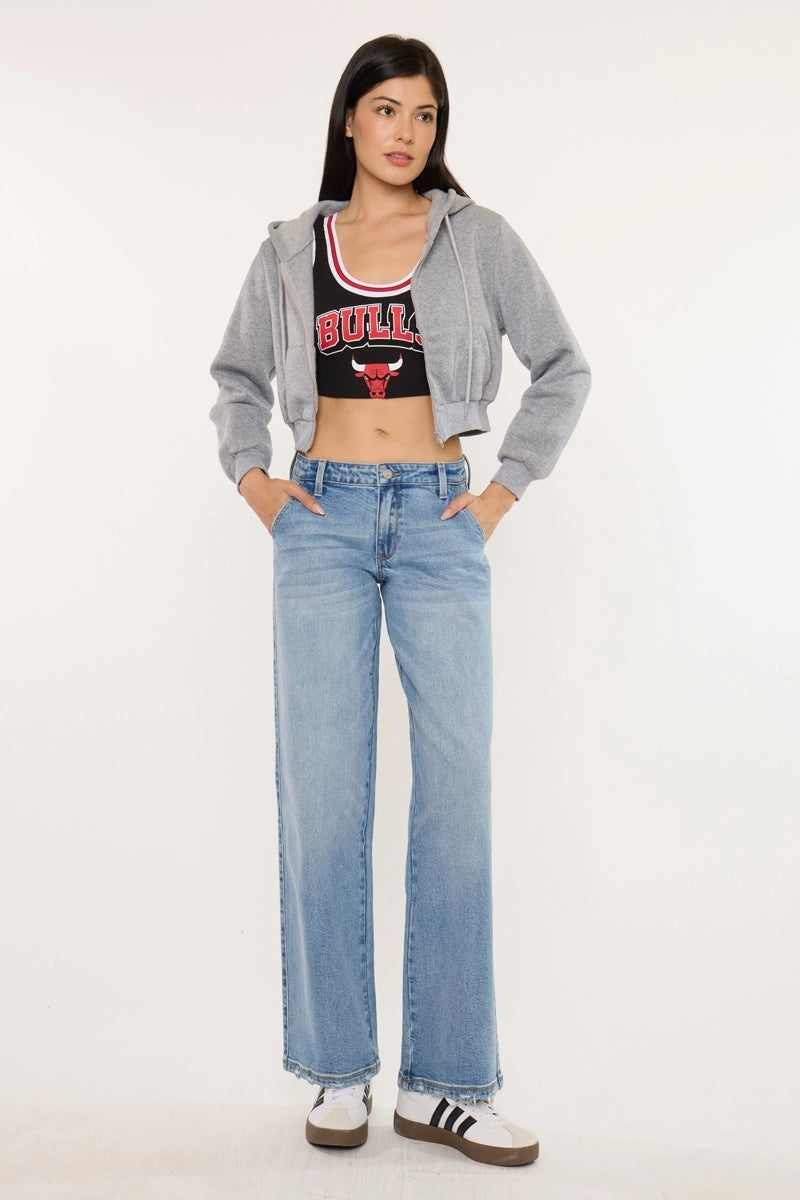 The KanCan Crater Mid Rise Wide Leg Trouser blends tailored structure with everyday comfort. Designed with a flattering mid rise and wide leg silhouette, these trousers offer a modern, effortless look. Dress them up with a blouse and boots or keep it casual with a tee and sneakers—either way, they’re a standout staple.
