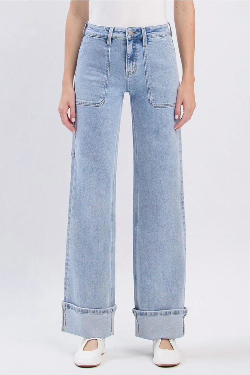 Lovervet by VERVET High Rise Carpenter Pocket Cuffed Wide Leg Jeans