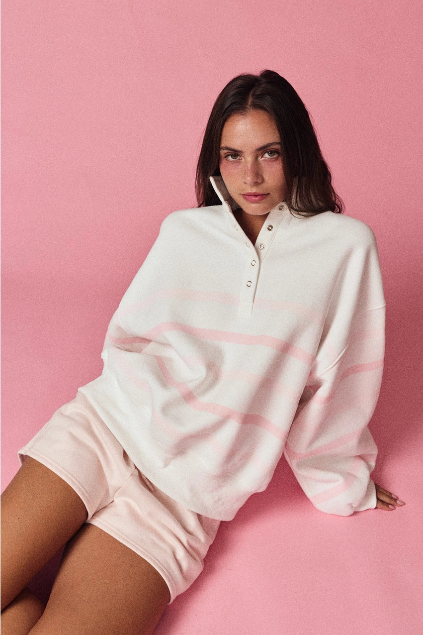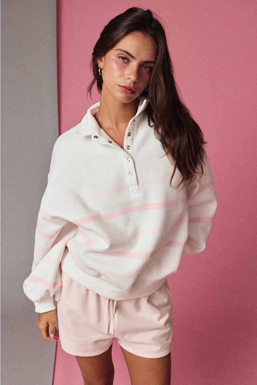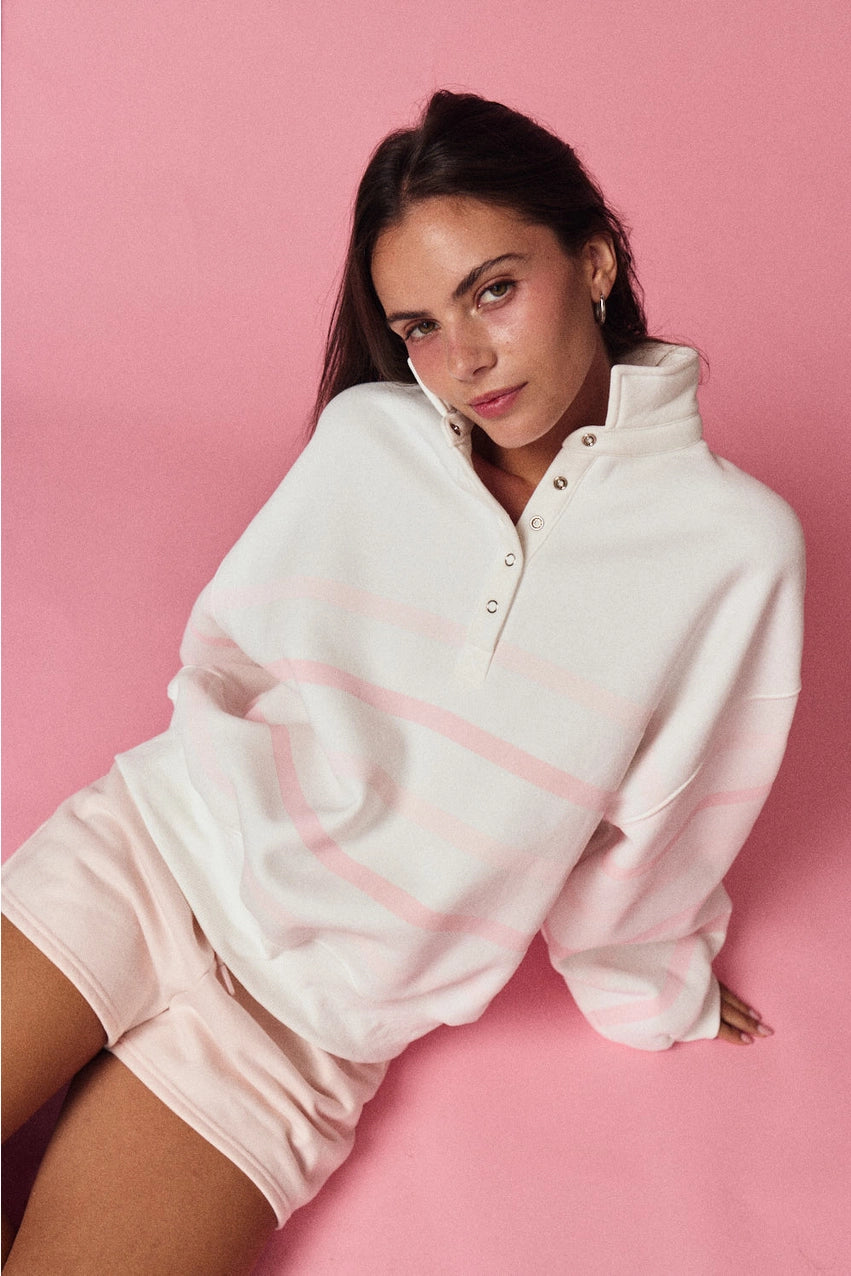 This Cotton Candy Stripe Half-Button Sweater is the perfect blend of cozy and cute. Featuring a classic stripe pattern and a soft knit feel, this top is easy to wear and effortless to style. Pair it with denim for a casual look or dress it up with trousers for an elevated everyday outfit.