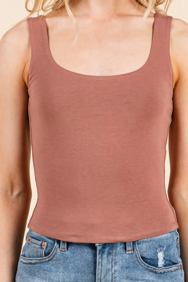 The Double Scoop Neck Double Layered Crop Tank Top is all about effortless style. Soft, lightweight fabric and a double-layered design give it a polished, flattering fit, while the scoop neckline keeps it feminine and versatile. Perfect for layering under jackets, cardigans, or wearing solo with high-waisted bottoms.