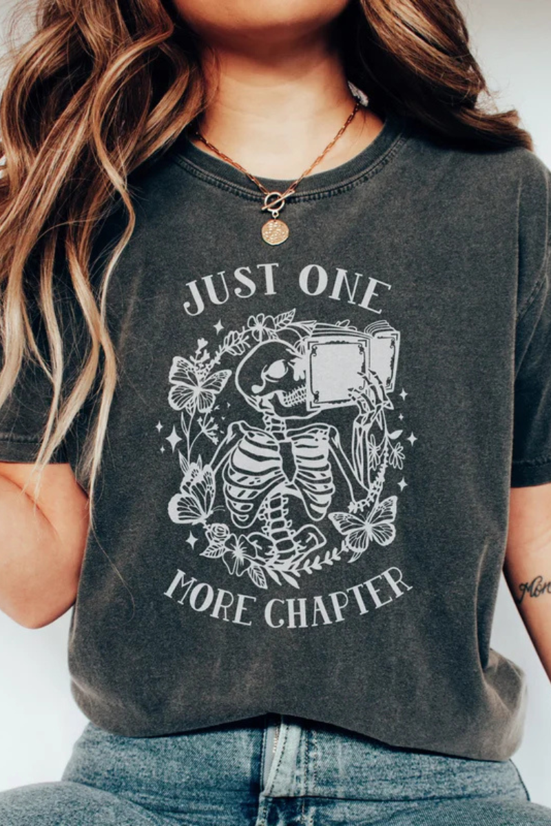 The Just One More Chapter Tee is made for late nights, good books, and “accidentally” staying up too late. Featuring a soft, comfortable fit and an easy-to-style silhouette, this tee is perfect for everyday wear—whether you’re reading or running errands.