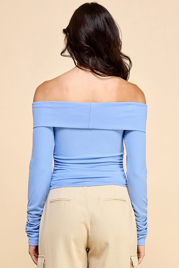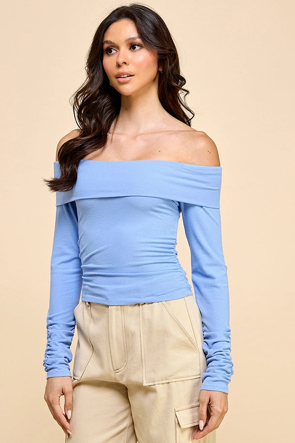 Off Shoulder Ruching Detail Rib Top