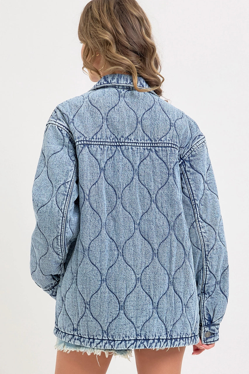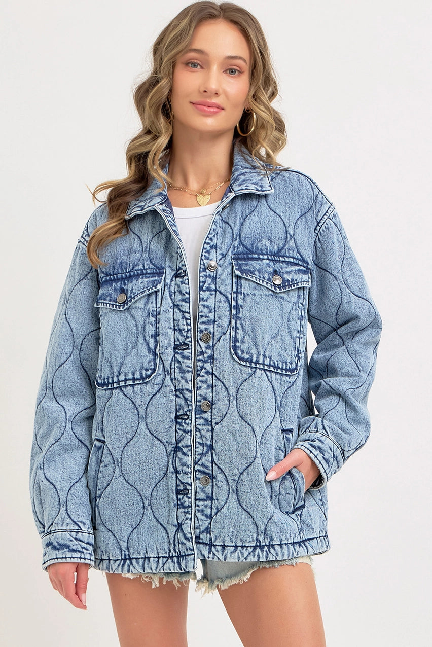 Our Quilted Denim Jacket is where timeless denim meets cozy comfort. With its soft quilted texture, relaxed fit, and just-right weight, it’s the perfect layer for breezy days or cool nights. Effortlessly casual yet elevated — throw it over a tee, hoodie, or dress for that laid-back, lived-in look.