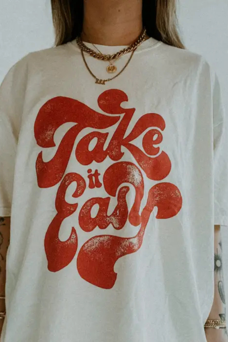 Catch all the vintage vibes with this Take It Easy Retro Tee. Featuring a groovy graphic and sun-faded tones, this tee feels like a thrifted gem with a modern twist. Soft, relaxed, and effortlessly cool—it's your new go-to for slow days, sunny road trips, and easygoing outfits.
