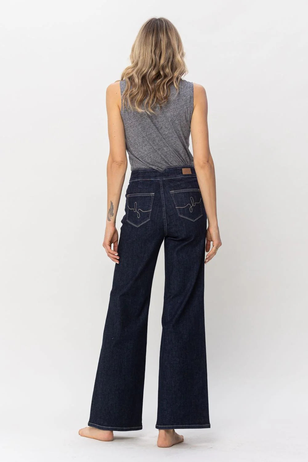 Judy Blue High Waist Rinse Wash Geometric Embroidery Wide Leg Jean