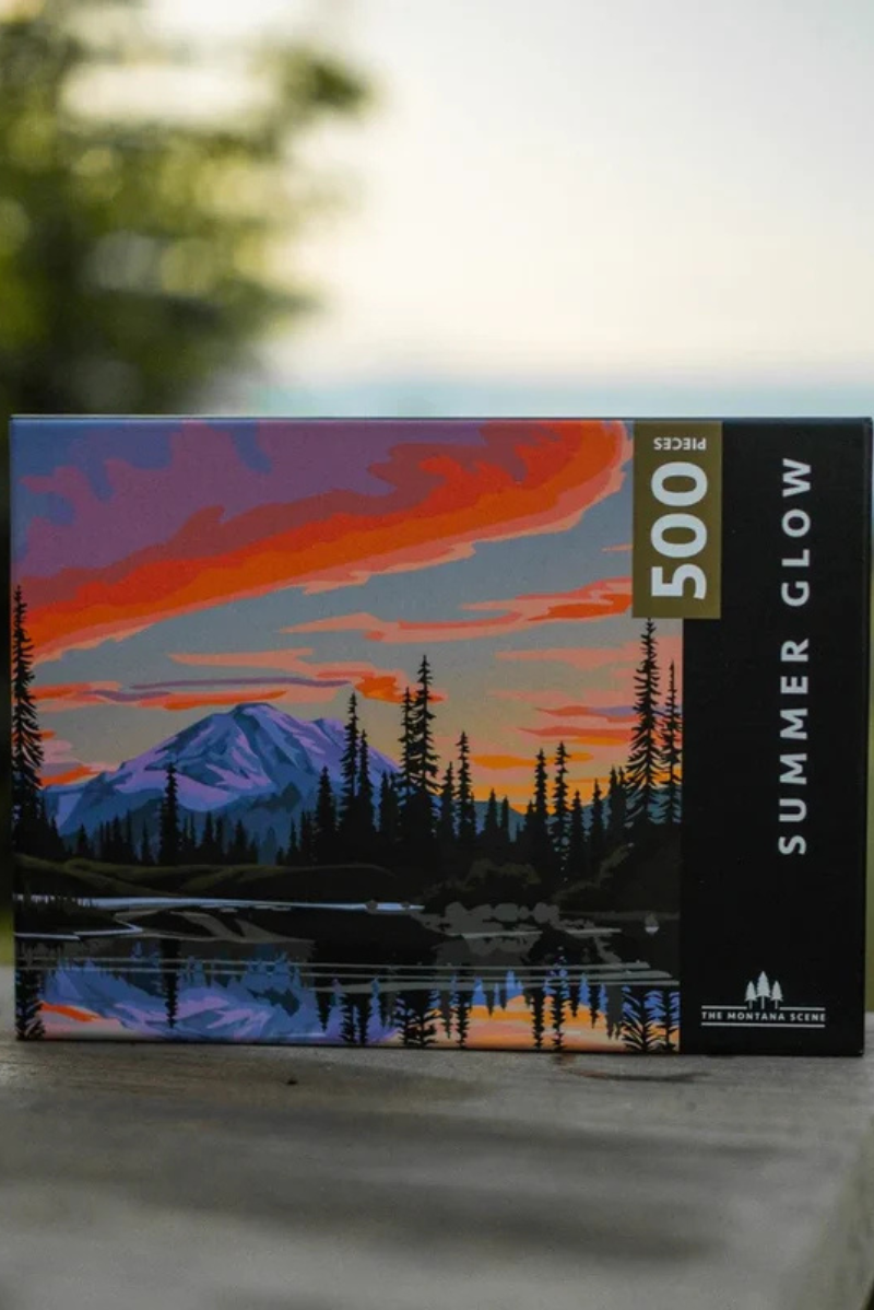 Indulge in the mesmerizing hues of a summer evening with our 'Summer Glow' puzzle. As the sun bids farewell, it paints the sky in delicate shades of pinks and purples, casting a dreamy ambiance over the tranquil mountain lake below. With serene waters and vibrant wildflowers adding a touch of enchantment to the scene.