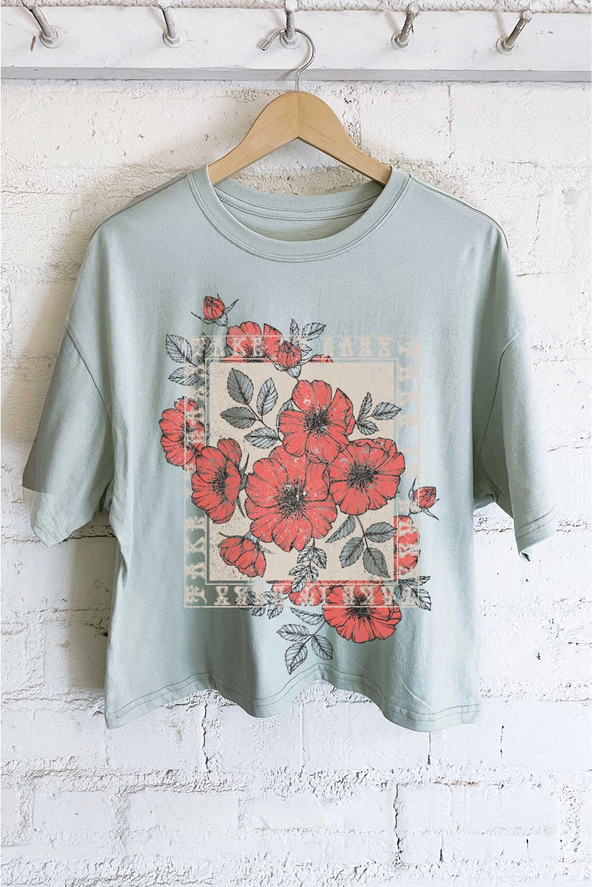 Take It Easy Vintage Flower Long Crop Tee