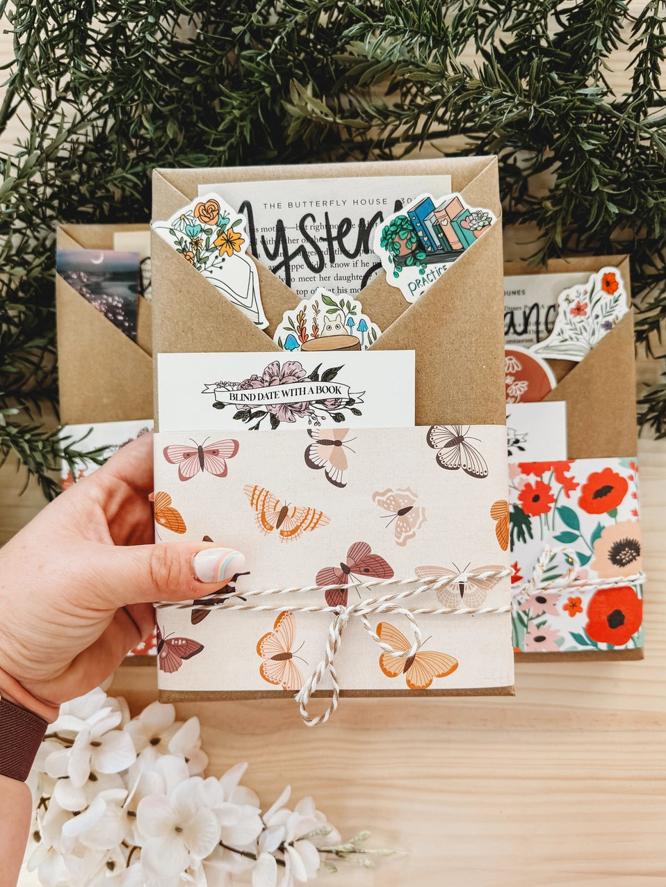 Looking for a surprise read? Try a Blind Date with a Book! Each package comes with fun stickers, a piece of book paper featuring the genre and a little teaser to get you excited, a “Blind Date with a Book” info card, and the prettiest wrapping and tie.
