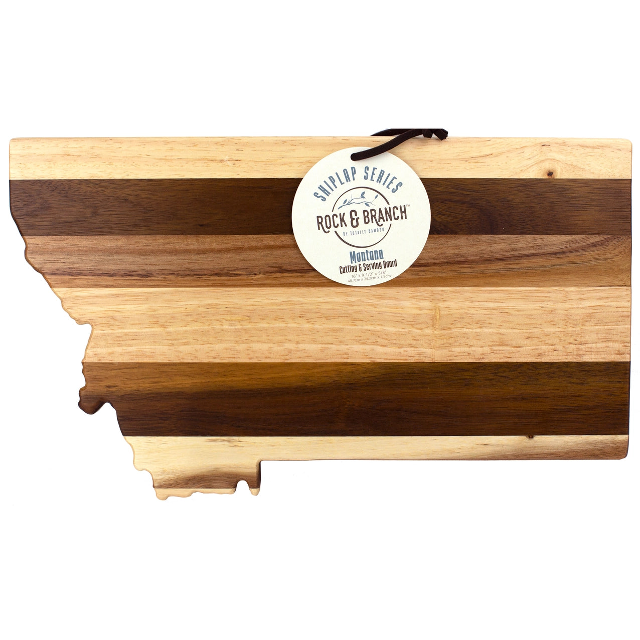 Our Rock & Branch® Shiplap Series incorporates the hot trending "shiplap" décor look into our most popular cutting board shapes. The Shiplap Series features multiple shades of wood for a gorgeous artisan appearance. Each board includes a hang tie to easily double as wall décor.