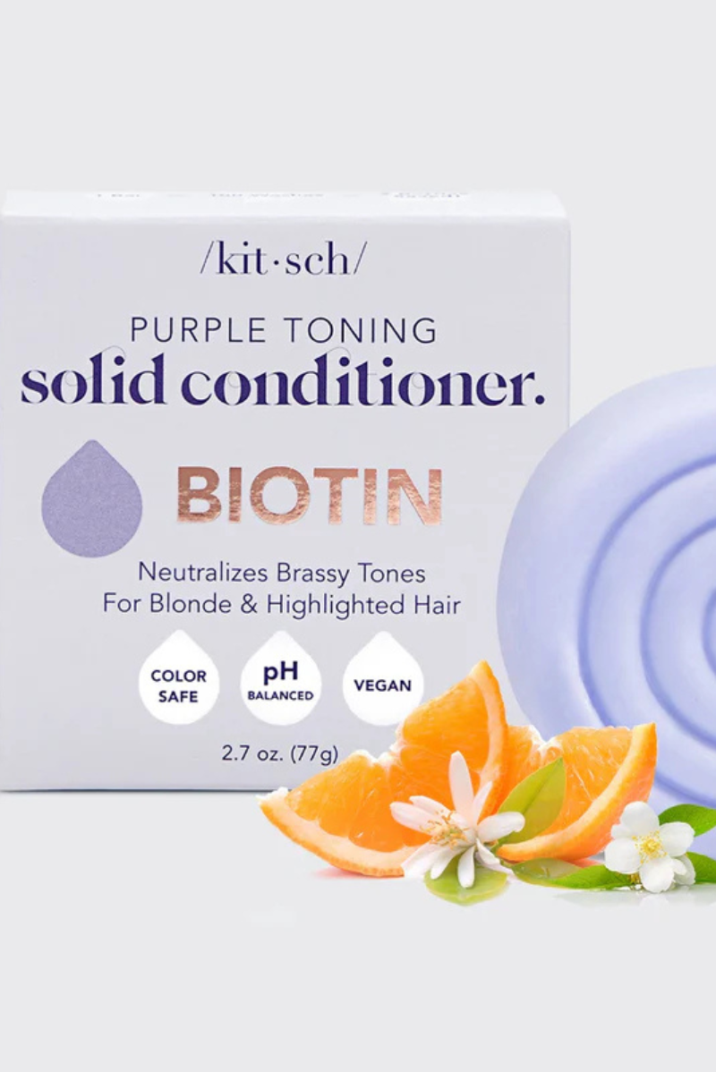 The world's first solid purple shampoo bar with Biotin! Safe for blondes, grey & white hair: color-treated, highlighted, & natural. Neutralizes unwanted brassiness and yellow undertones. Enriched with Biotin to boost shine, reduce dullness & strengthen your hair Enjoy smoother, stronger & more vibrant blonde hair after just one use! Free of parabens, phthalates, silicones, sulfates, & artificial fragrance Reduces single-use plastic: saves two bottles of liquid shampoo/conditioner Made in the USA with quality ingredients