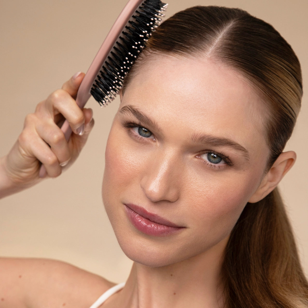 Gentle detangling meets glossy finish—all in one brush.