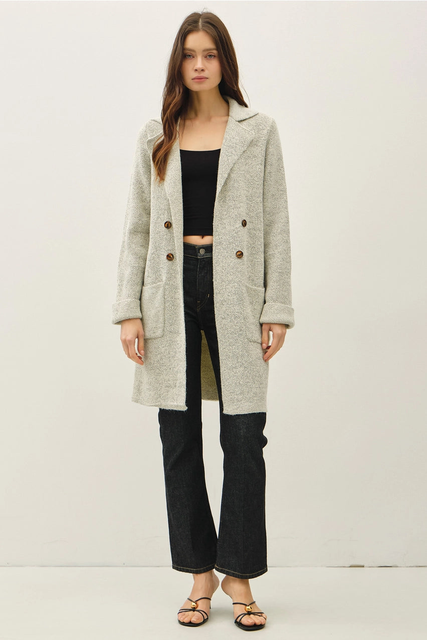 Effortless layering made simple. This open-front sweater coat is a timeless wardrobe staple designed for comfort and versatility. The clean, minimal silhouette drapes beautifully, making it easy to pair with denim, trousers, or dresses. Crafted from a soft knit with just the right amount of structure, it offers the perfect balance of cozy warmth and polished style.