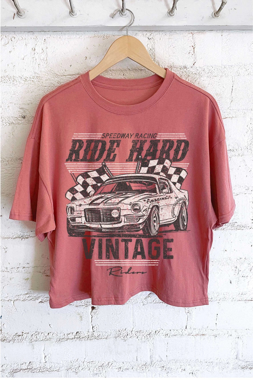 The Ride Hard Vintage Car Long Crop Tee brings classic car culture with a modern twist. Featuring a vintage-inspired car graphic and a flattering long crop length, this tee delivers effortless edge and throwback style. Perfect with high-rise denim or cutoffs for an easy, cool-girl look.