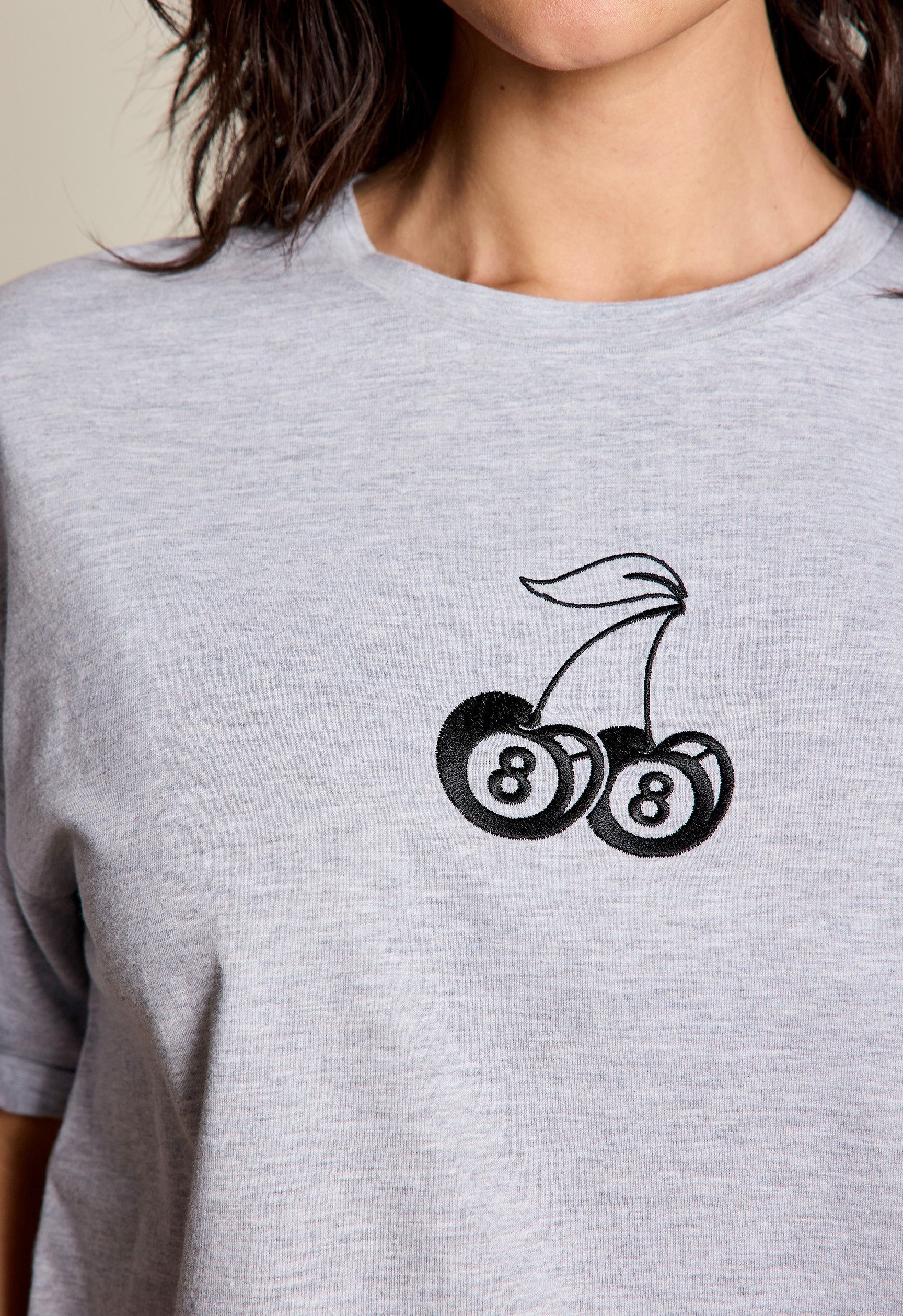Sweet, sassy, and a little bit lucky. This tee features playful cherry and 8-ball embroidery for a fun, standout vibe. Soft, comfy, and effortlessly cool, it pairs perfectly with denim or skirts — a little charm with a lot of attitude.