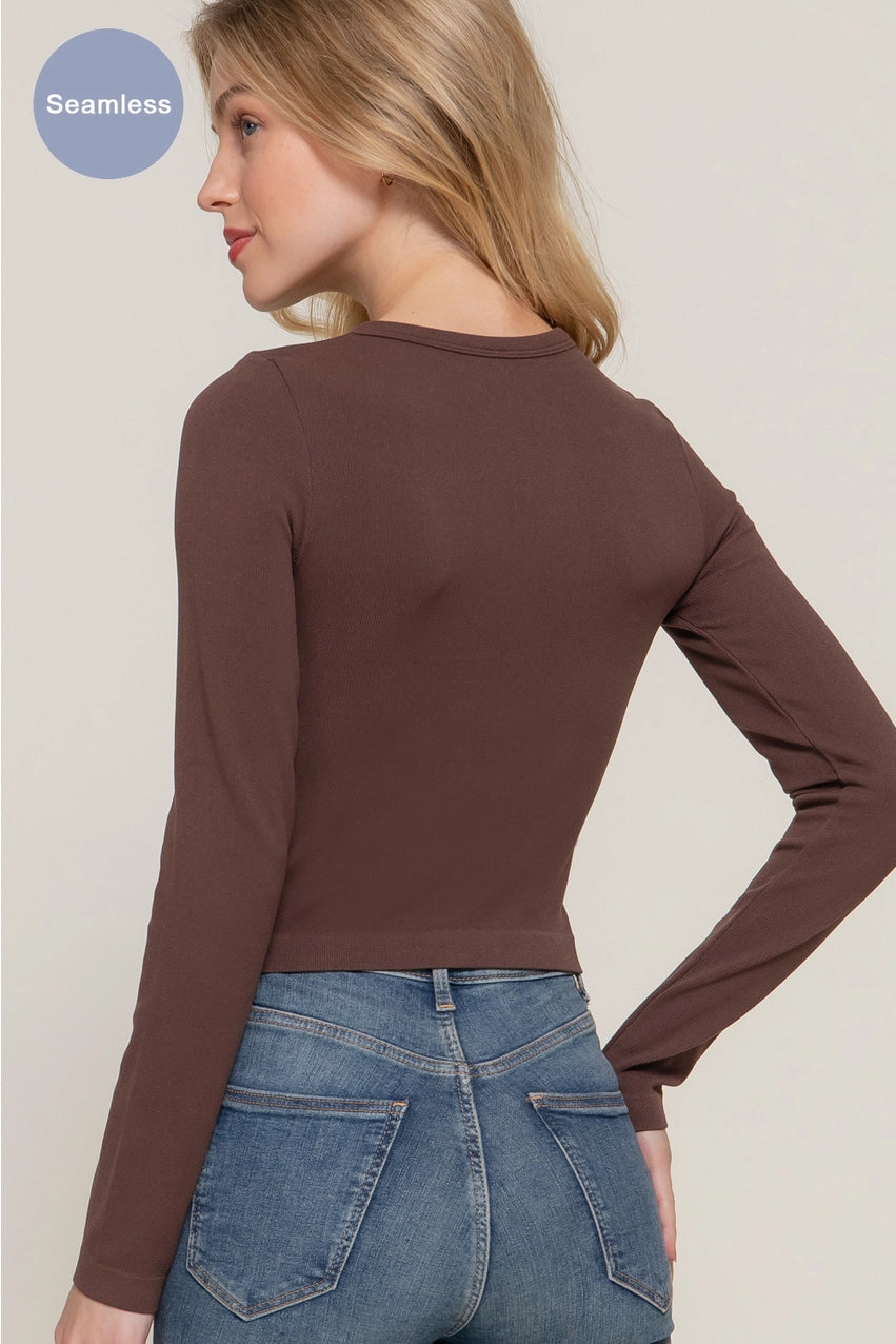 Sleek, simple, and endlessly versatile — this Long Sleeve Crew Neck Rib Seamless Top is a wardrobe essential. Crafted from soft, stretchy ribbed fabric, it offers a smooth, flattering fit without seams for all-day comfort. Perfect for layering under jackets, vests, or pairing with your favorite jeans and leggings, it’s a polished yet effortless piece that elevates everyday style with boutique-chic ease.
