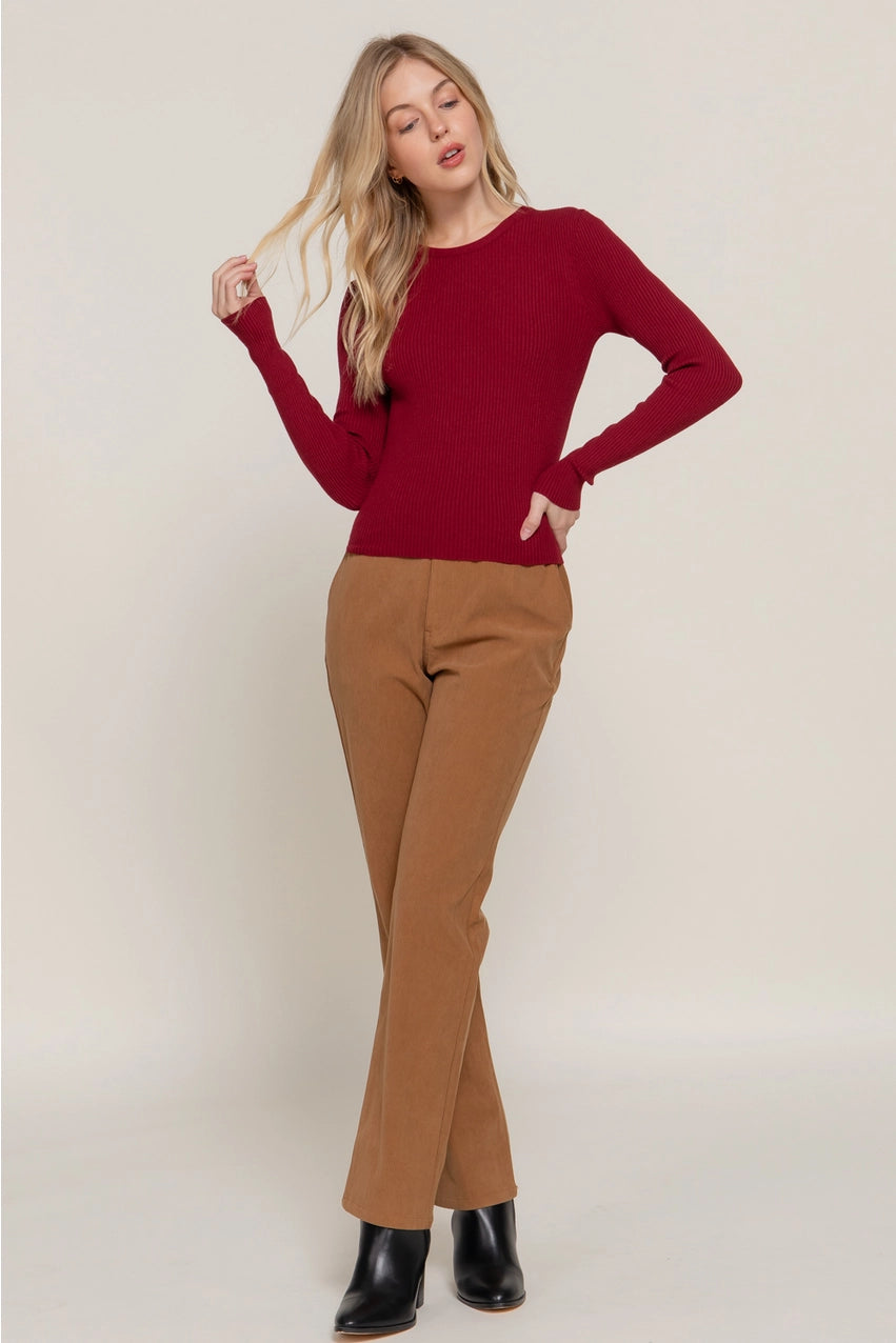 Long Sleeve Crew Neck Viscose Rib Sweater