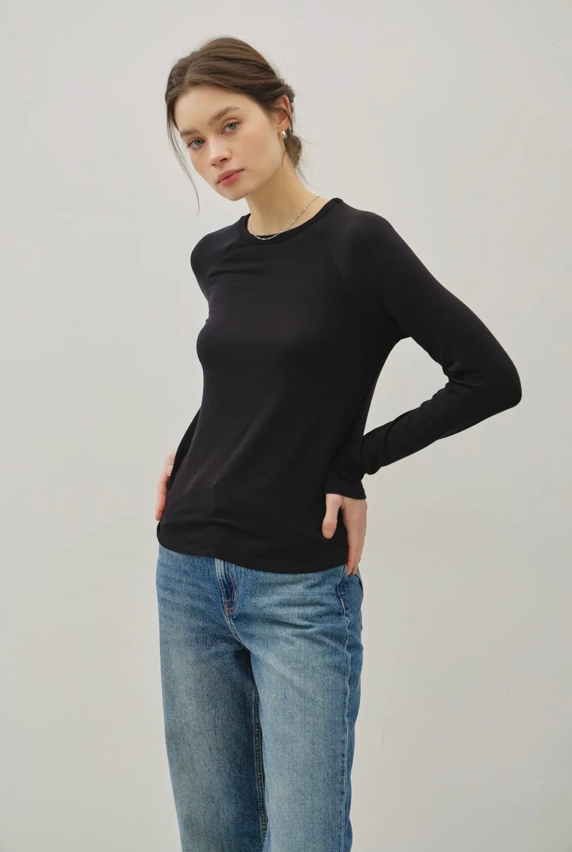Soft, sleek, and oh-so-flattering — our Modal Raglan Sleeve Tee is a wardrobe must-have. Made from buttery modal fabric with the perfect amount of stretch, it drapes beautifully for a flattering fit you’ll want to wear on repeat. Effortlessly pairs with denim, skirts, or leggings for that polished-but-comfy look we all love.